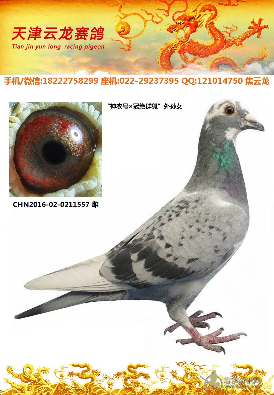 鸽子名称: 足环: 性别:♀雌鸽 眼别: 羽色: 年代:2016 血统: 作育者:焦云龙