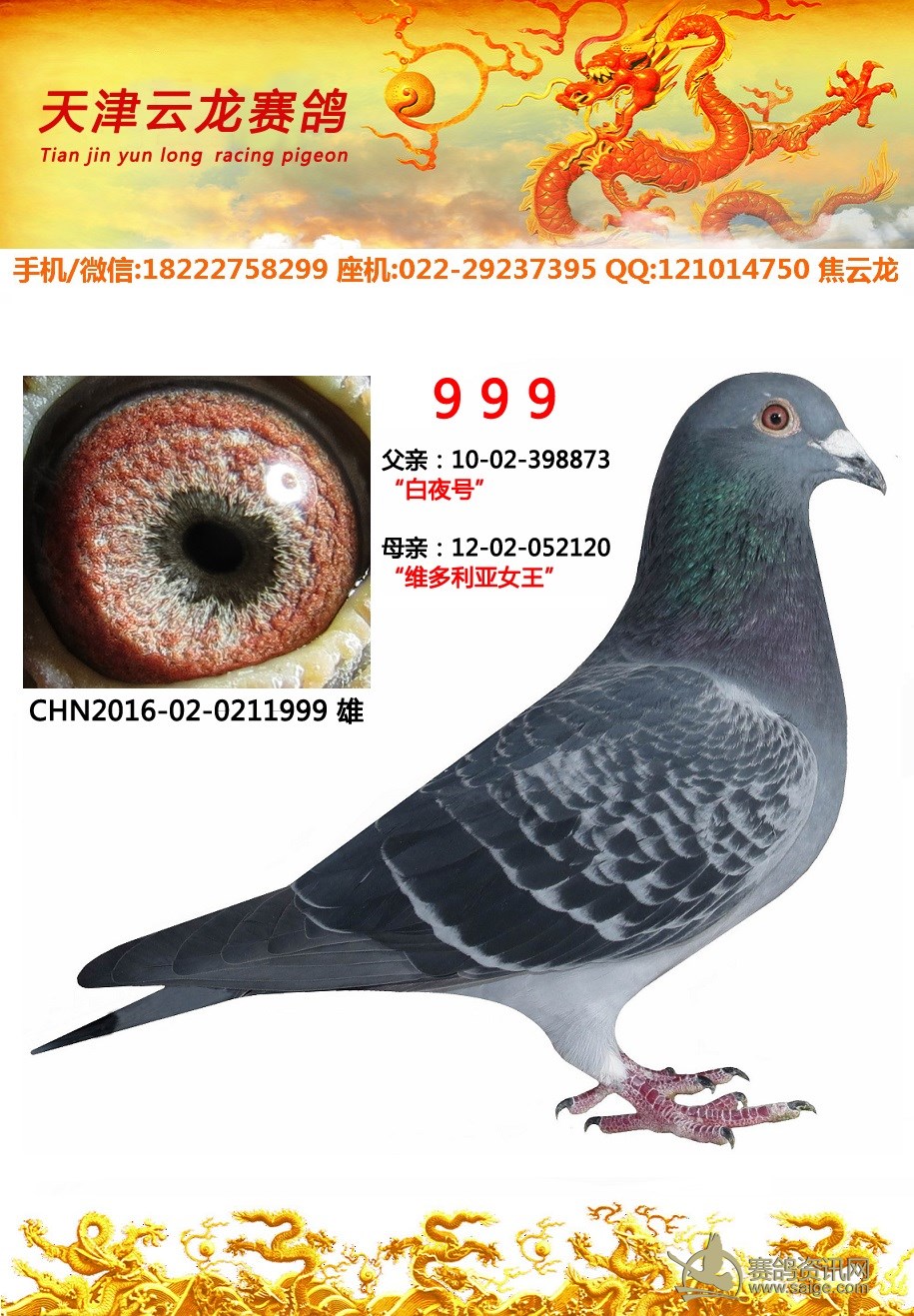 鸽子名称: 足环:2016-02-0211999 性别:♂雄鸽 眼别:砂 羽色:黑斑 年代:2016 血统:詹森×考夫曼 作育者:焦云龙