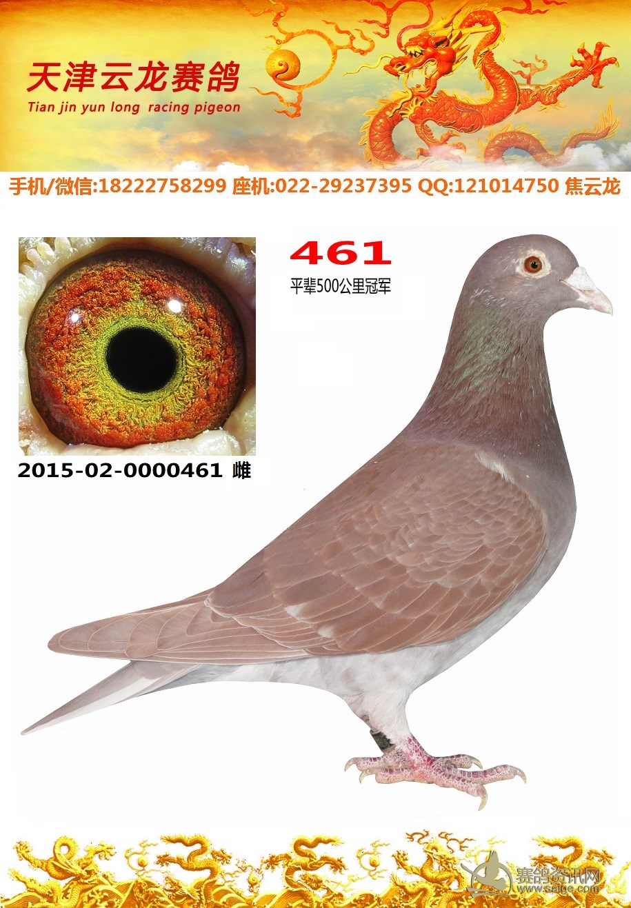 鸽子名称: 足环: 性别:♂雄鸽 眼别: 羽色: 年代:2015 血统: 作育者:焦云龙