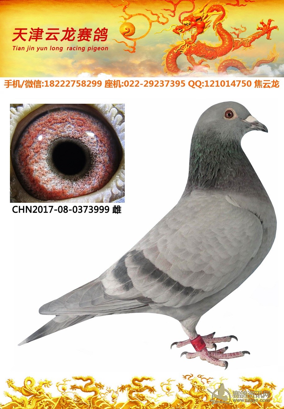 鸽子名称: 足环:2017-08-0373999 性别:♀雌鸽 眼别: 羽色: 年代:2017 血统: 作育者:焦云龙
