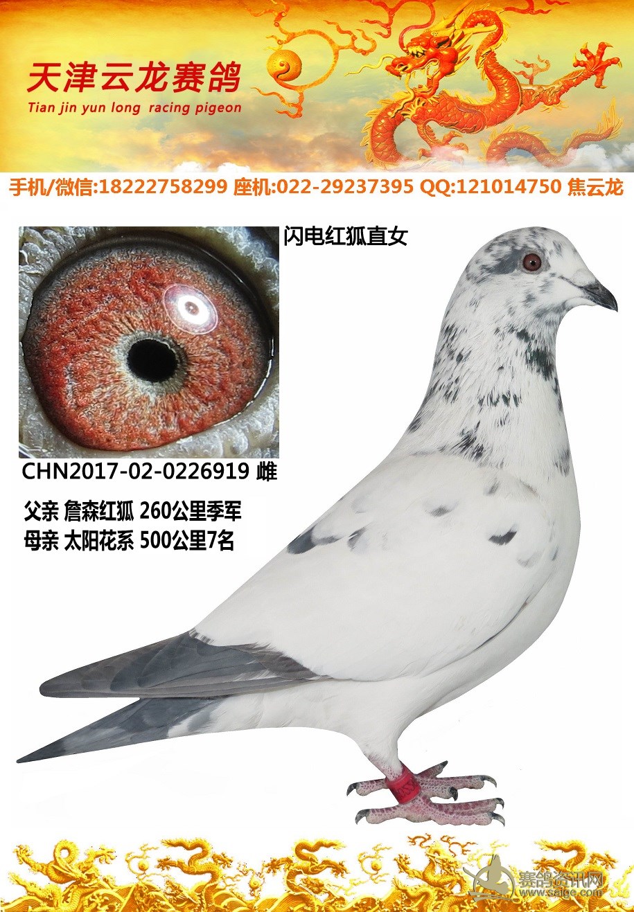 鸽子名称: 足环:2017-02-0226919 性别:♂雄鸽 眼别: 羽色: 年代: 血统: 作育者: