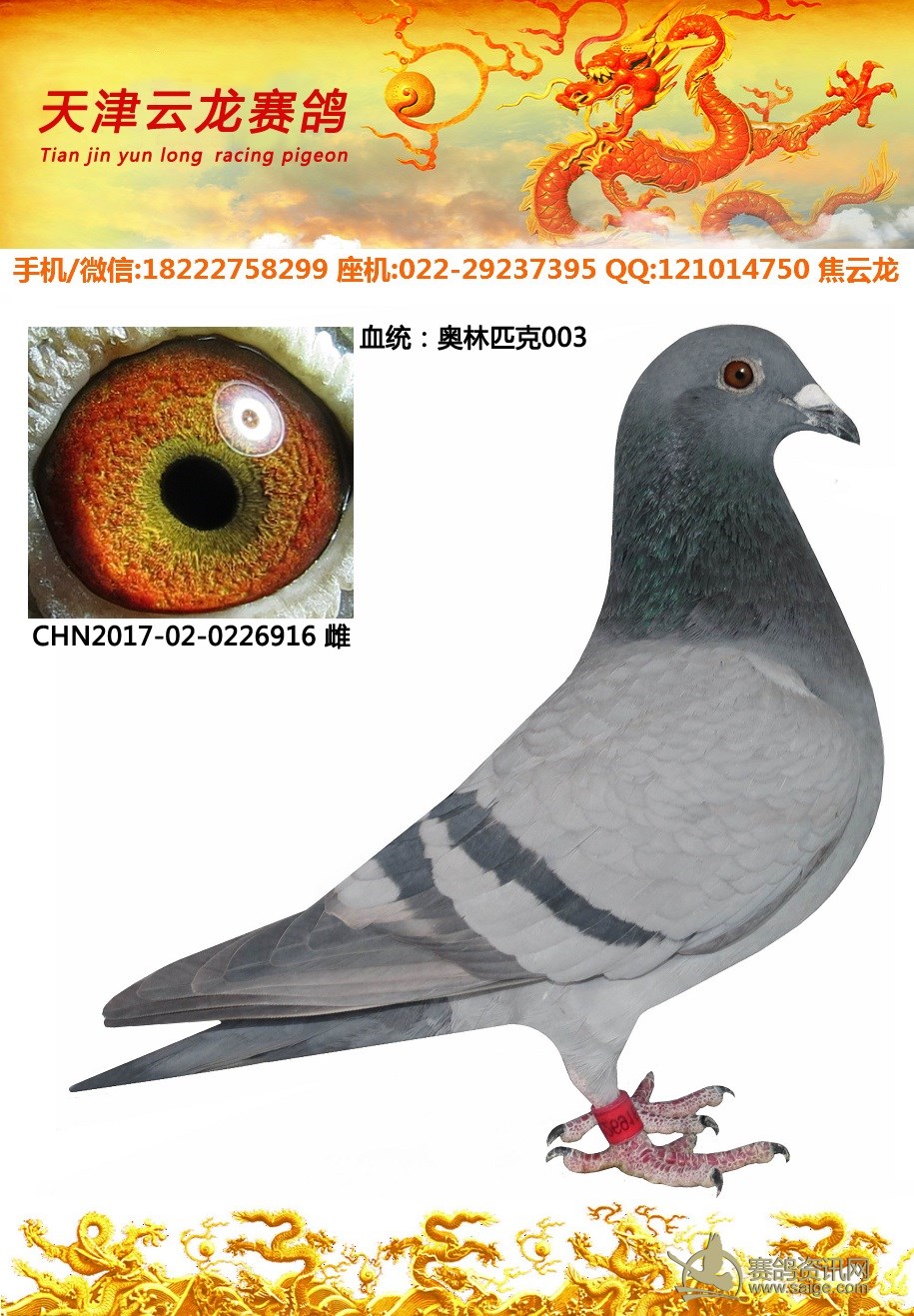 鸽子名称: 足环:2017-02-0226916 性别:♀雌鸽 眼别: 羽色: 年代: 血统: 作育者: