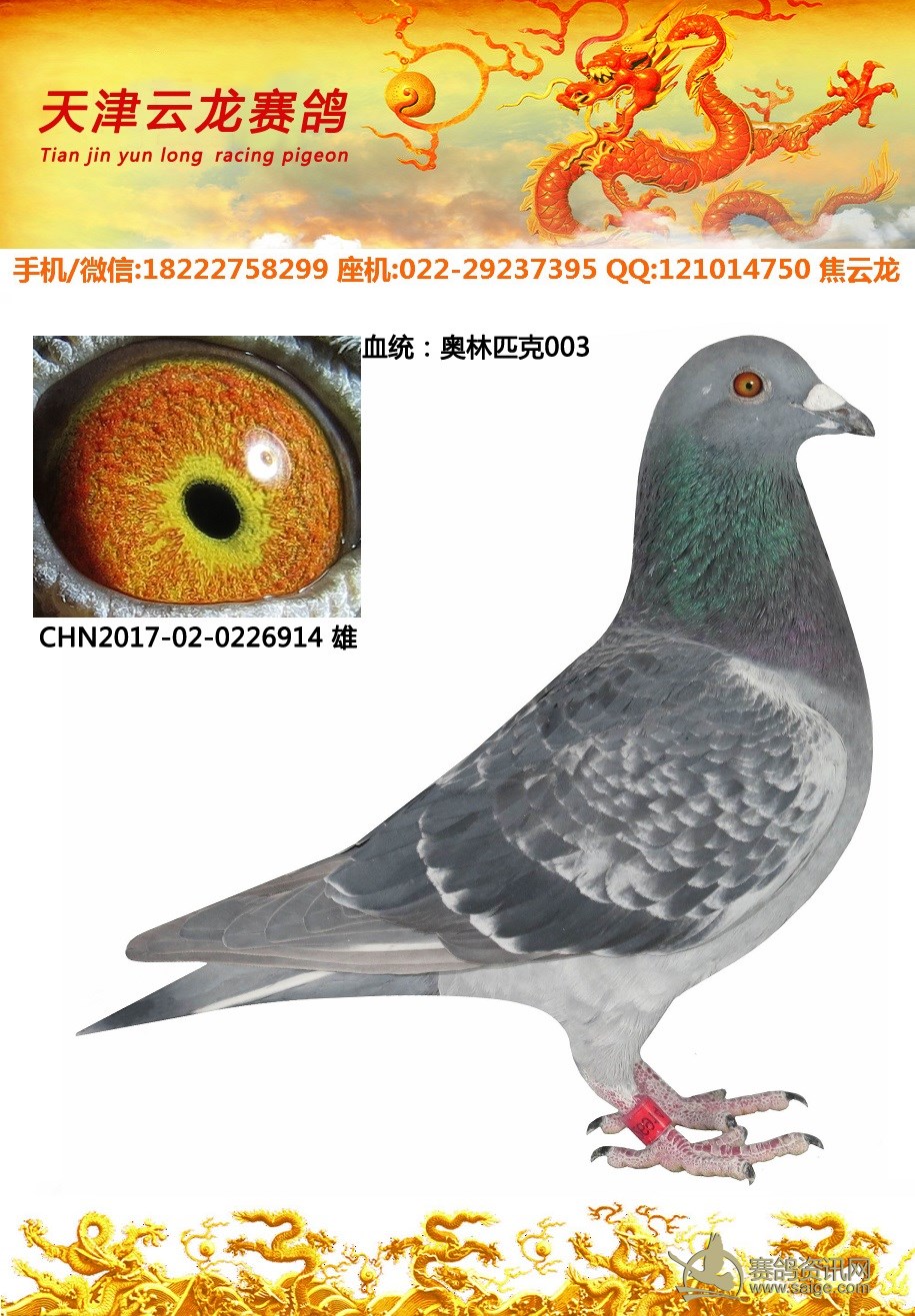 鸽子名称: 足环:2017-02-0226914 性别:♂雄鸽 眼别: 羽色: 年代: 血统: 作育者: