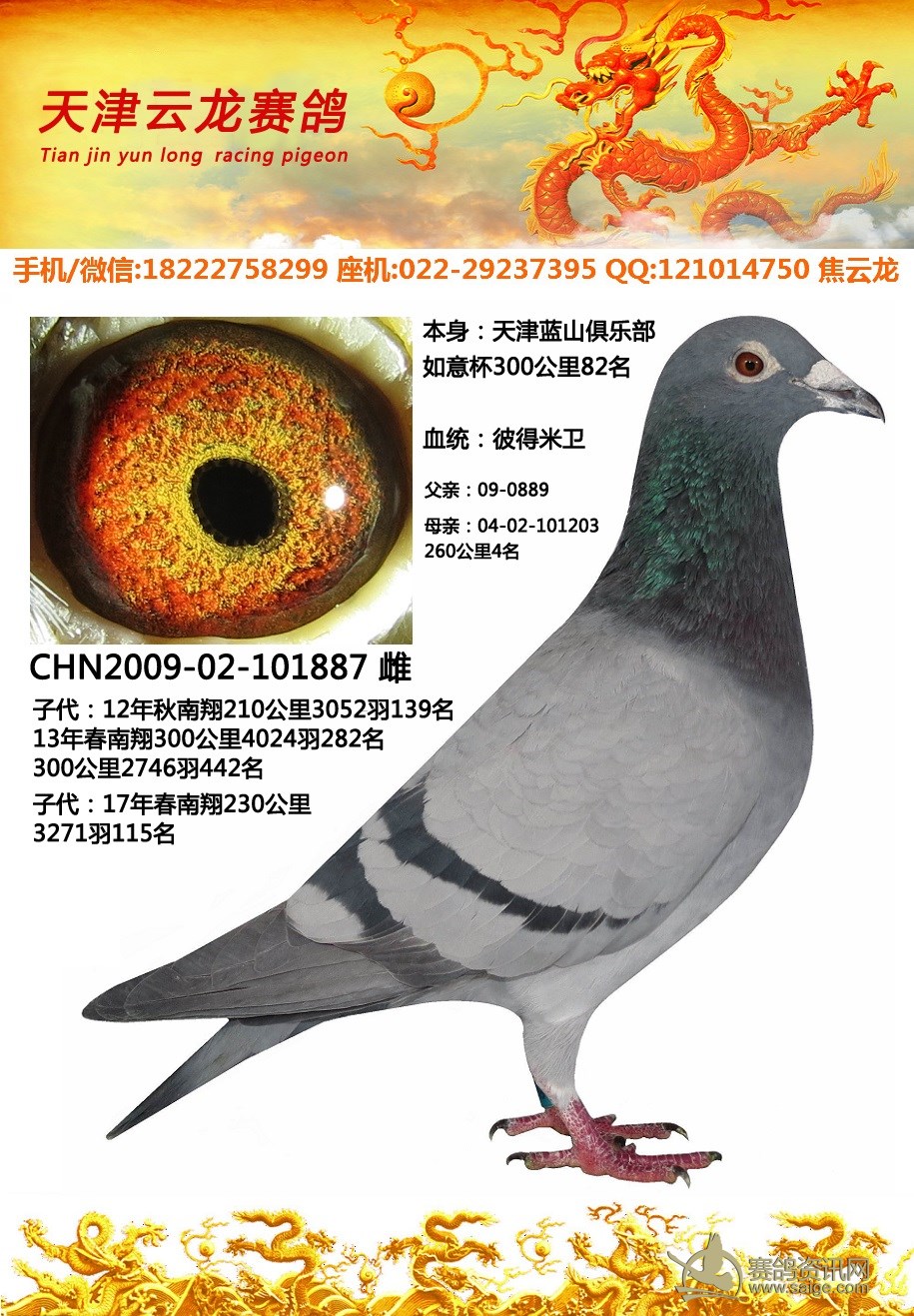 鸽子名称: 足环:2009-02-101887 性别:♀雌鸽 眼别: 羽色: 年代: 血统: 作育者: