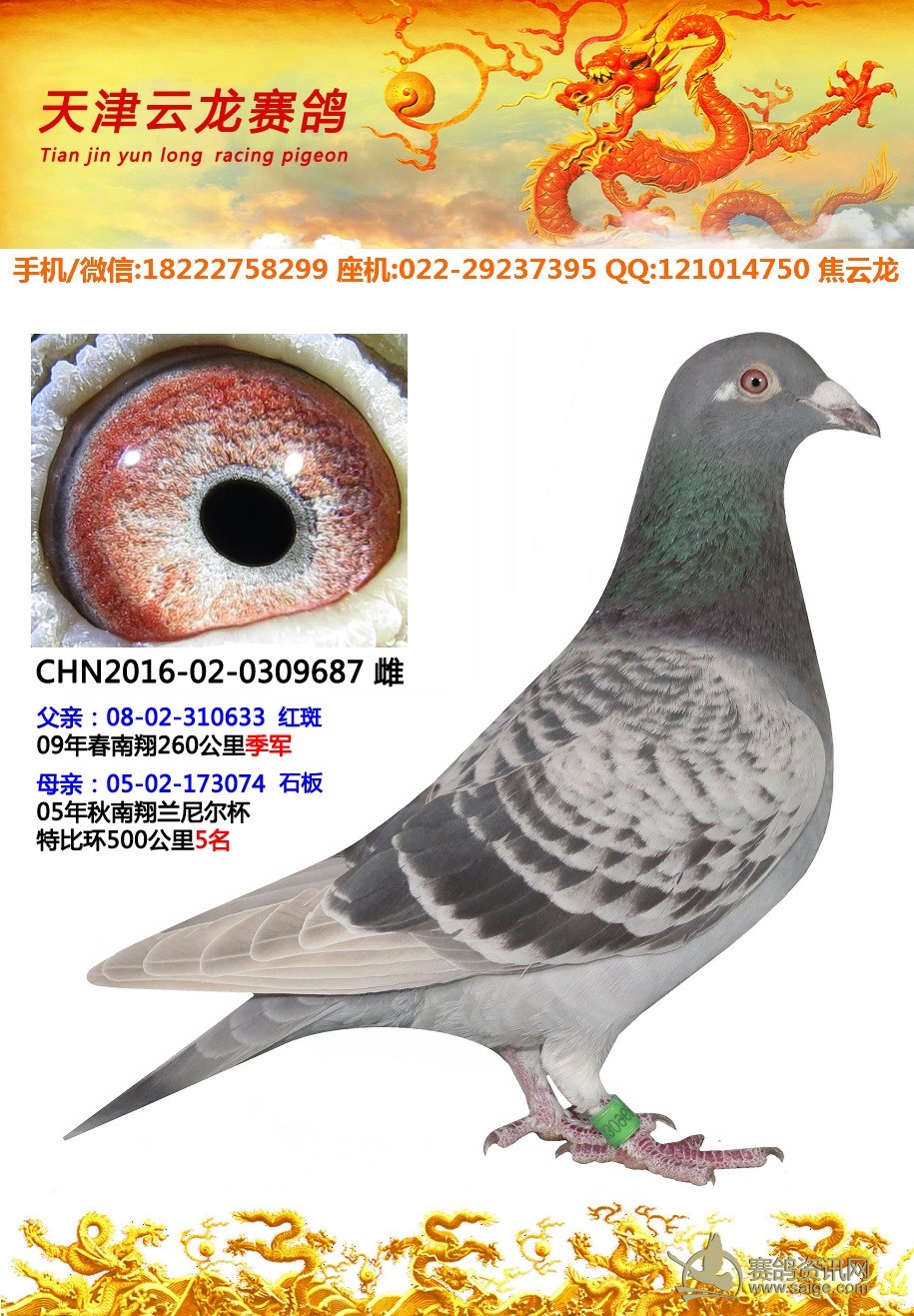 鸽子名称: 足环:2016-02-0309687 性别:♀雌鸽 眼别: 羽色: 年代: 血统: 作育者: