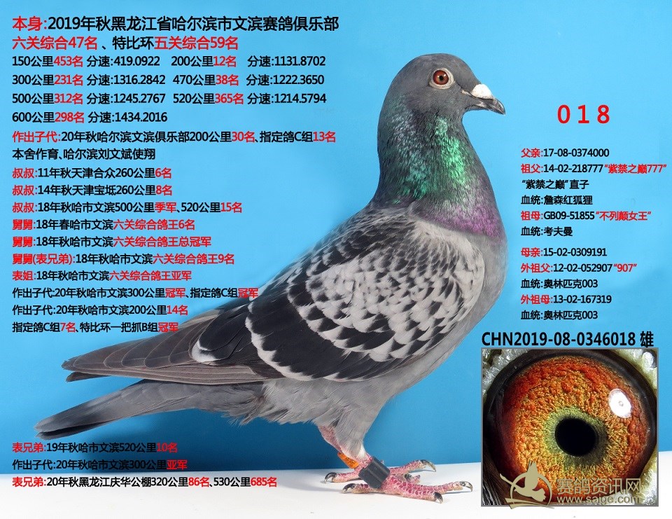 鸽子名称: 足环: 性别:未知 眼别: 羽色: 年代:2019 血统: 作育者:焦云龙