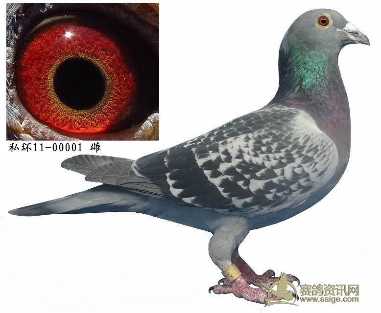 鸽子名称: 足环:云龙赛鸽2011-00001 性别:♀雌鸽 眼别:黄 羽色:黑斑 年代:2011 血统:凡龙超级73 作育者:焦云龙