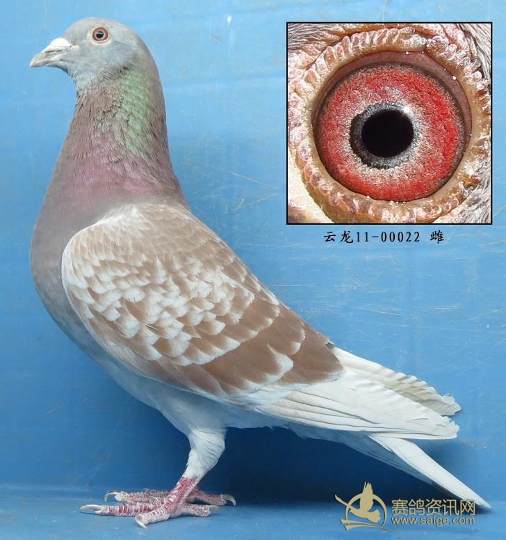 鸽子名称: 足环:云龙赛鸽2011-00022 性别:♀雌鸽 眼别:砂眼 羽色:红斑 年代:2011 血统:紫禁之巅 作育者:焦云龙