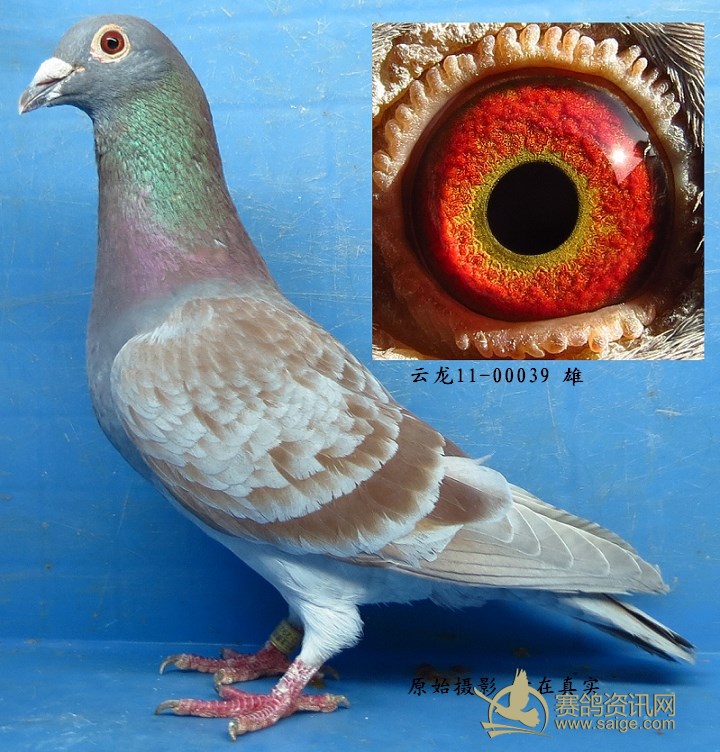 鸽子名称: 足环:云龙赛鸽2011-00039 性别:♂雄鸽 眼别:黄 羽色:红石板 年代:2011 血统:红 作育者:焦云龙