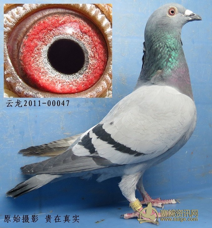 鸽子名称: 足环:云龙赛鸽2011-0 性别:♀雌鸽 眼别:砂眼 羽色:灰 年代:2011 血统:最灵 作育者: