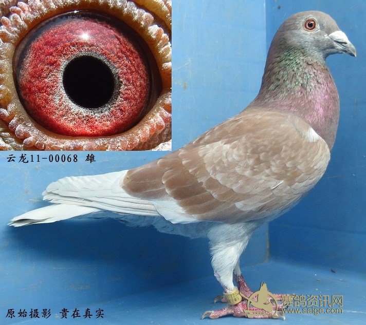 鸽子名称: 足环:云龙赛鸽2011-00068 性别:♂雄鸽 眼别:砂眼 羽色:红 年代:2011 血统:紫禁之巅 作育者:焦云龙