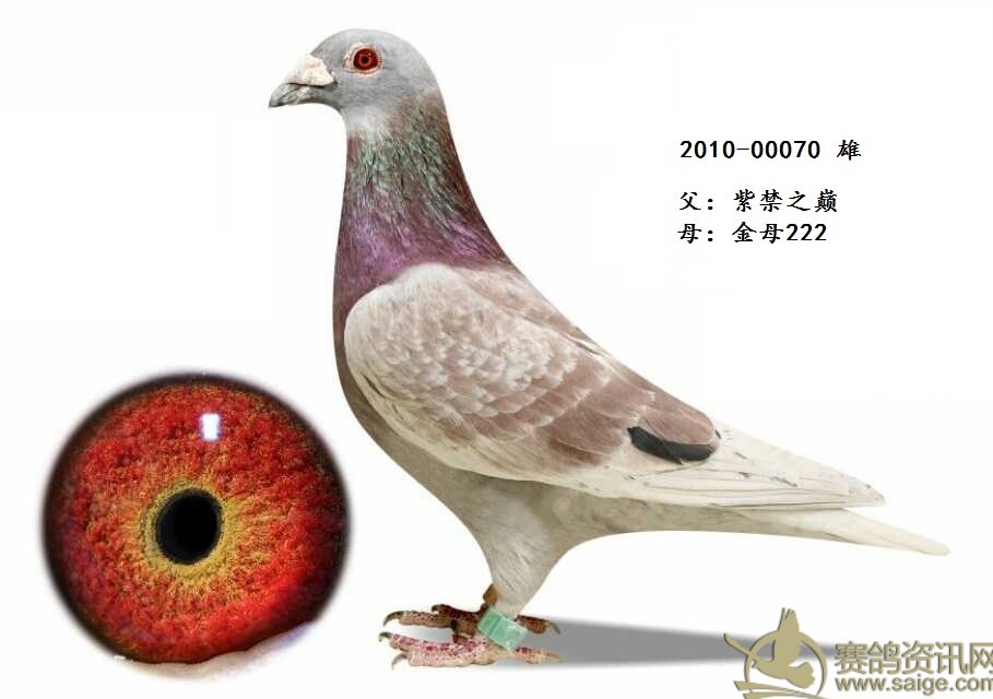 鸽子名称: 足环:云龙赛鸽2011-00070 性别:♂雄鸽 眼别:砂眼 羽色:红斑 年代:2011 血统:紫禁之巅 作育者:焦云龙