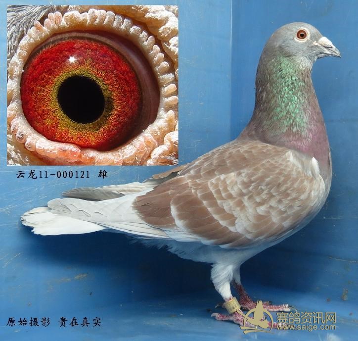 鸽子名称: 足环:云龙赛鸽2011-00121 性别:♂雄鸽 眼别:黄 羽色:红 年代:2011 血统:紫禁之巅 作育者:焦云龙