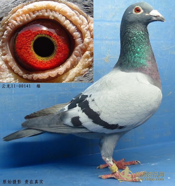 鸽子名称: 足环:云龙赛鸽2011-00141 性别:♂雄鸽 眼别:黄 羽色:灰 年代:2011 血统:盖世 作育者:焦云龙