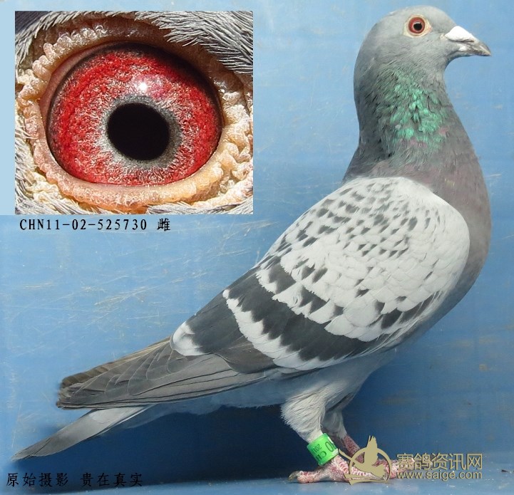 鸽子名称: 足环:11-02-5259730 性别:♀雌鸽 眼别:砂 羽色:浅斑 年代:2011 血统:最灵 作育者:焦云龙