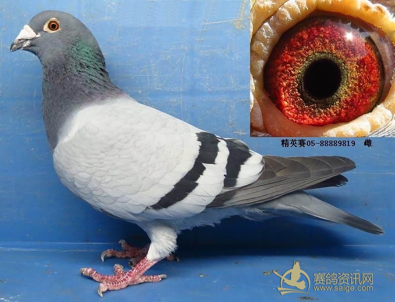 鸽子名称: 足环:05-88889819 性别:♀雌鸽 眼别:黄 羽色:灰 年代:2005 血统:盖世 作育者:焦云龙