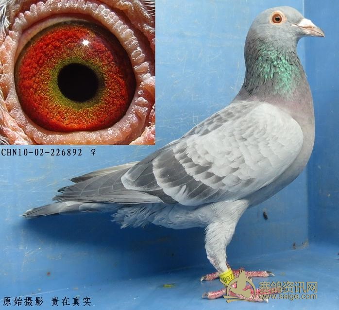 鸽子名称: 足环:10-02-226892 性别:♀雌鸽 眼别:黄 羽色:石斑 年代:2010 血统: 作育者:焦云龙