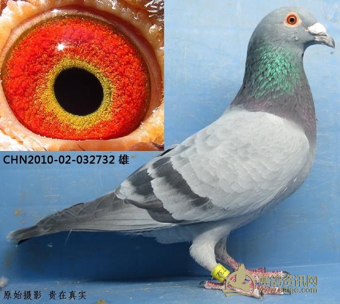 鸽子名称: 足环:2010-02-032732 性别:♂雄鸽 眼别:黄 羽色:石板 年代: 血统:戈马利×詹森 作育者: