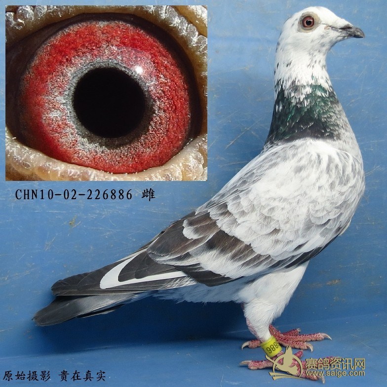 鸽子名称: 足环:10-02-226886 性别:♀雌鸽 眼别:砂眼 羽色:麒麟花 年代:2010 血统:苍白骑士 作育者:焦云龙