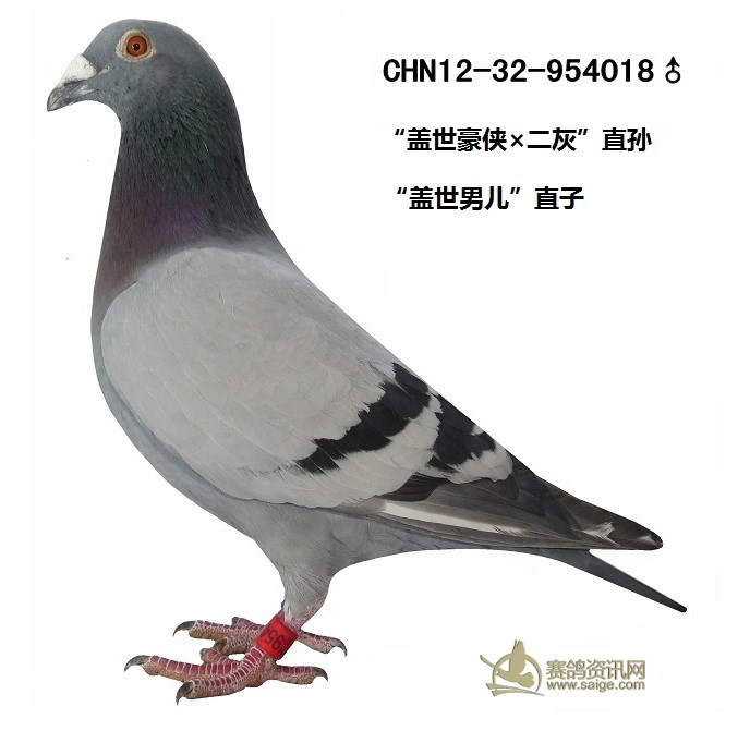 鸽子名称: 足环:12-32-954018 性别:♂雄鸽 眼别:黄 羽色:灰白羽 年代:2012 血统:盖世 作育者:焦云龙