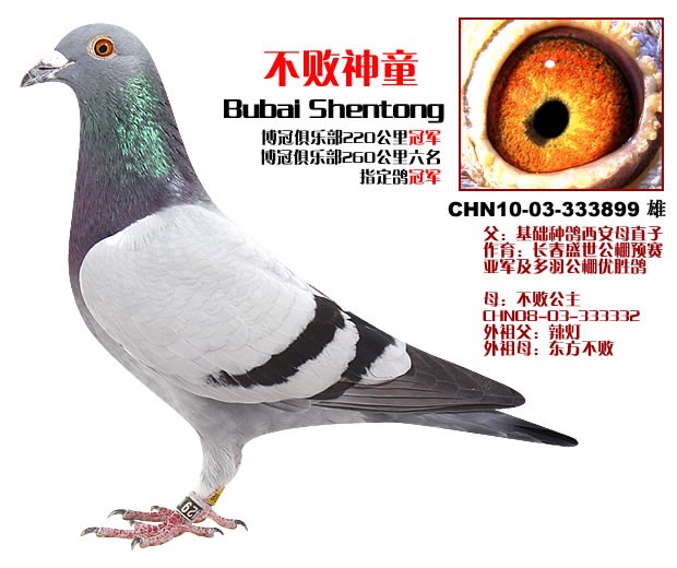 父:闪电传人(桑杰士血脉精华,2011年首次做育即夺得1羽鸽王冠军;2羽冠军;1羽季军)