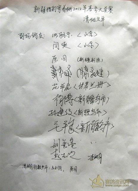 主办单位:新疆猎豹赛鸽俱乐部 清棚时间:2012年3月18日 到场鸽友:新疆猎豹赛鸽俱乐部寄养棚参赛鸽友、新疆各地鸽友等 清棚肉容:新疆猎豹赛鸽俱乐部寄养棚参赛鸽友上手自己的赛鸽(注:不能上手其他鸽友参赛鸽),参观鸽舍、了解饲养情况,喝茶聊鸽等。