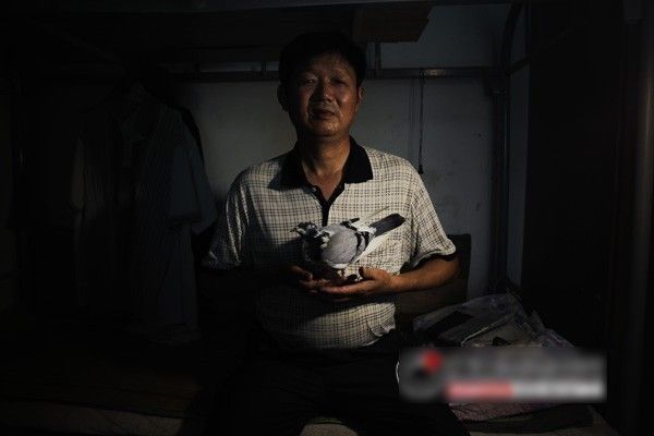 今天,在黄秀林居住的宿舍里,鸽子正安静地呆在角落里,它全身呈灰白色,脖颈处呈蓝紫色。旁边放着黄秀林为它准备的米饭。黄先生解释说,自己没有时间和精力养信鸽。