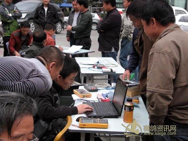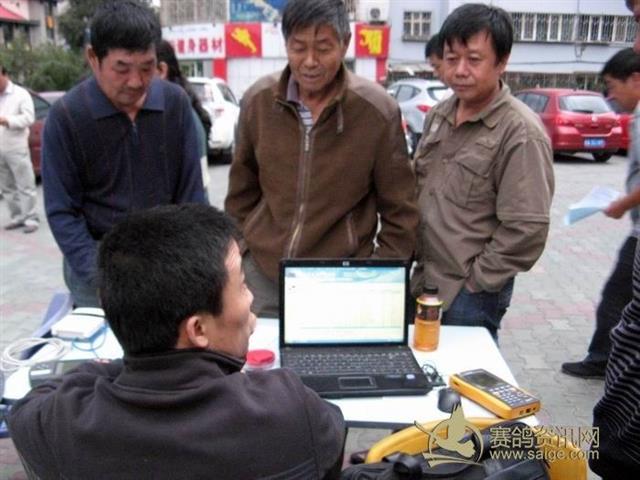 乌鲁木齐市水麽沟区信鸽协会2012年秋季300公里大奖赛集鸽现场——计算机裁判在核对会员数据