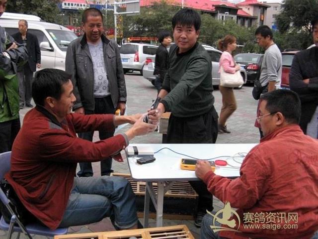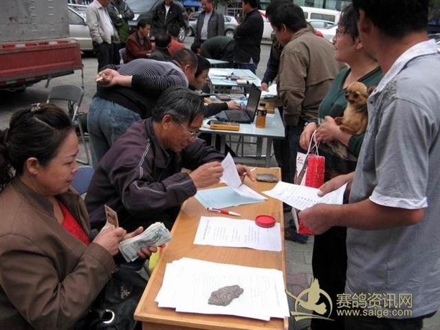 乌鲁木齐市水麽沟区信鸽协会2012年秋季300公里大奖赛集鸽现场——会员在交费