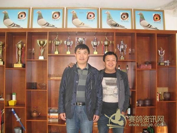 新疆赛鸽名家李铁钢-新疆猎豹鸽舍,左起:马庆华、杨博