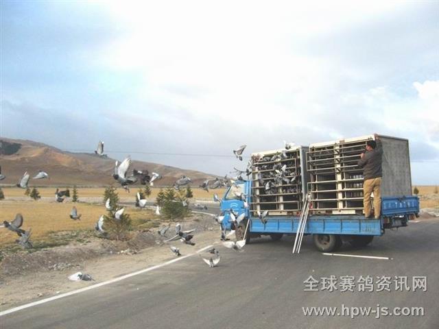 1.乌鲁木齐地区500km“鸽王积分”大奖赛,赛鸽车与2007年9月25日早上5:20点到达司放地--新疆赛里木湖。