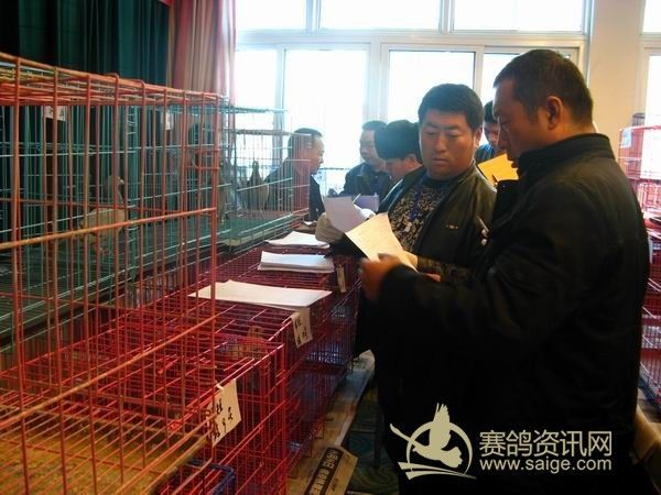 新疆第29届信鸽品评赛现场,现场鸽友参观品评赛优胜鸽