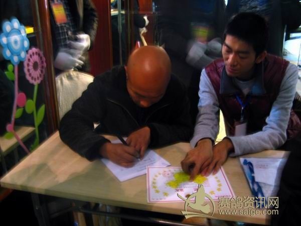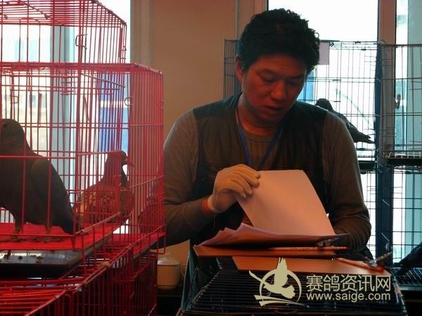 新疆第29届信鸽品评赛现场,裁判在认真确认参赛鸽参赛资格,乌苏市信鸽协会主席赵勇——“新疆勇飞鸽舍”