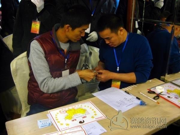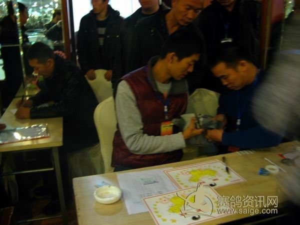 新疆第29届信鸽品评赛现场,根据分数拆封,确认参赛鸽足环号码
