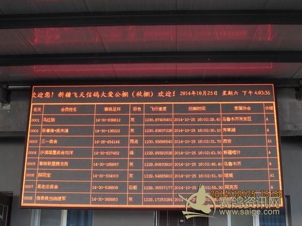 2014年飞天信鸽大爱公棚(秋棚)500Km第四关决赛现场 孙建设/图文 主办单位:新疆飞天信鸽大爱公棚 监赛单位:乌鲁木齐市信鸽协会 比赛地点:新疆飞天信鸽大爱公棚,地址,新疆乌鲁木齐市米东区芦草沟 比赛时间:2014年10月25日