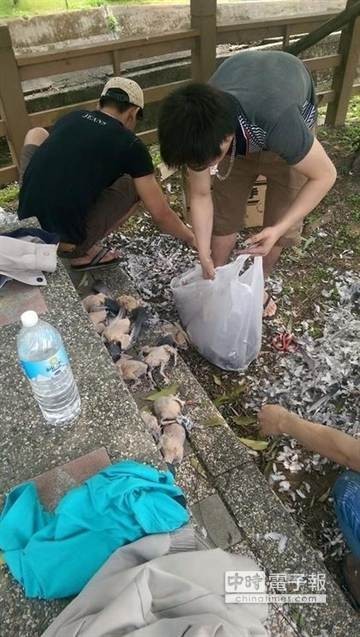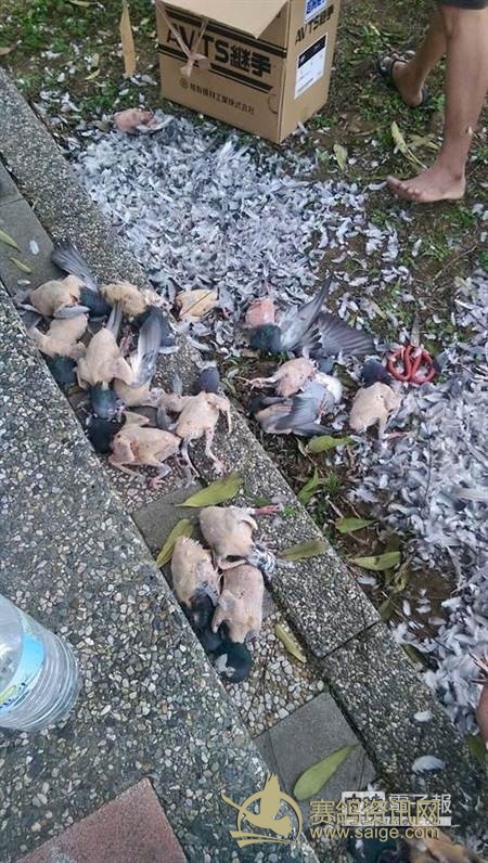 有民众日前在(台湾苗栗县北部)头份镇路旁发现多名外籍劳工在人行道上宰杀赛鸽。