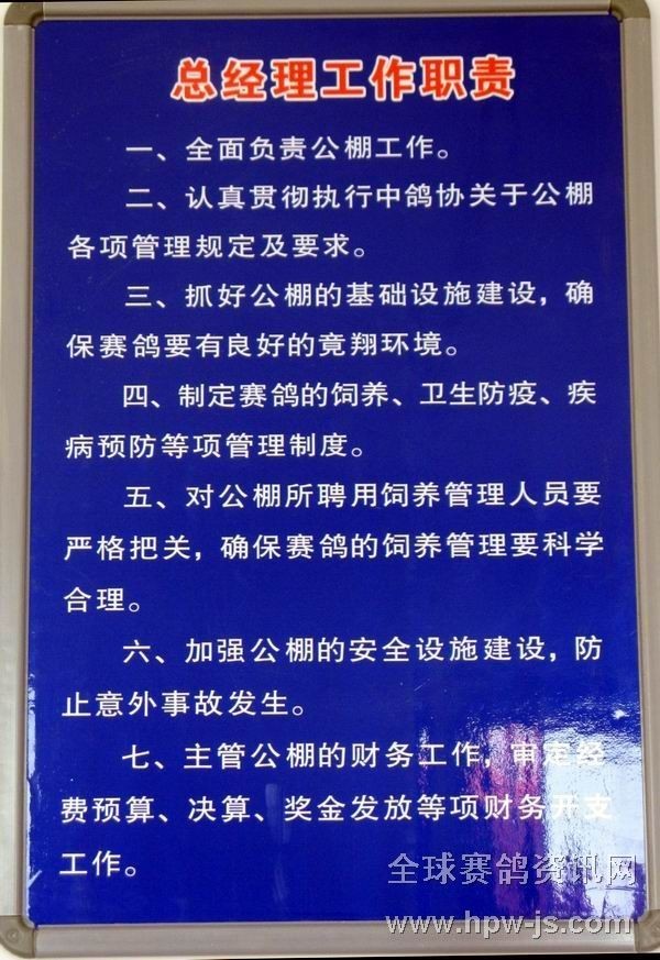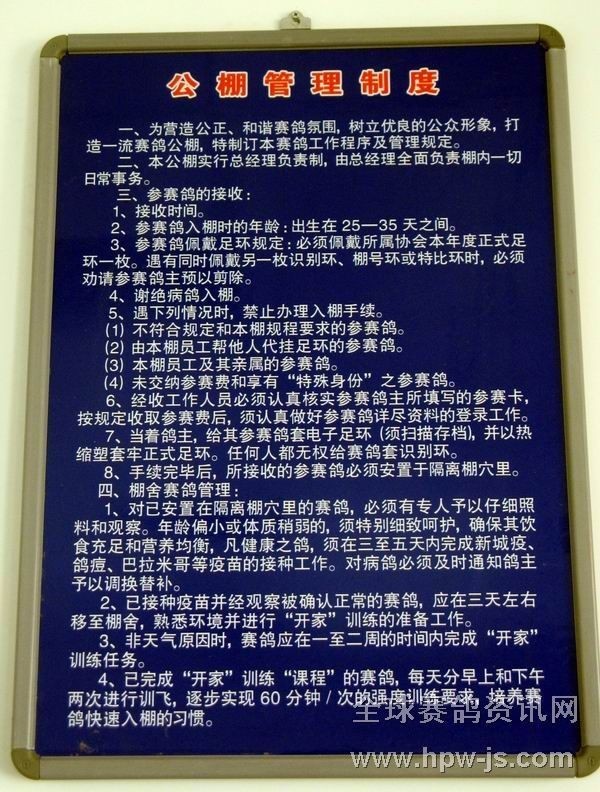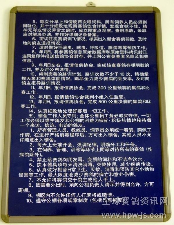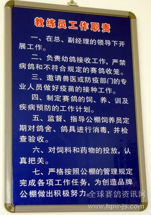 6.新疆乌鲁木齐市得天赛鸽公棚管理制度及公棚管理人员职责。