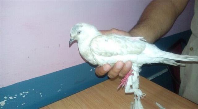 报道称,这只鸽子“间谍”可谓为王牌飞行员,它于5月28日栖息在印度一个村庄,它的栖息地仅距巴基斯坦边境4公里。鸽子翅膀处印有字迹模糊的乌尔都文字,身上还环绕着不明线状物体,这足以让印度旁遮普邦帕坦科特县居民将其移交给警察。