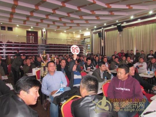新疆库尔勒铁门关公棚颁奖及拍卖现场,鸽王冠军鸽主乌鲁木齐市李明