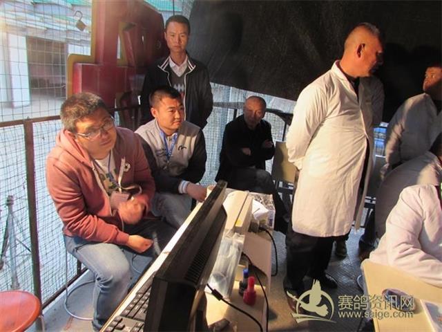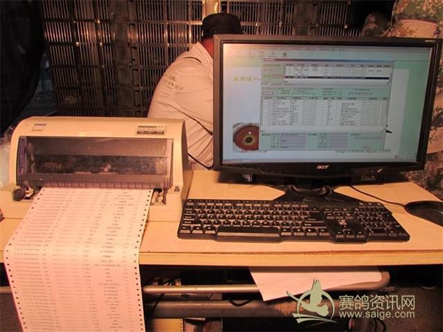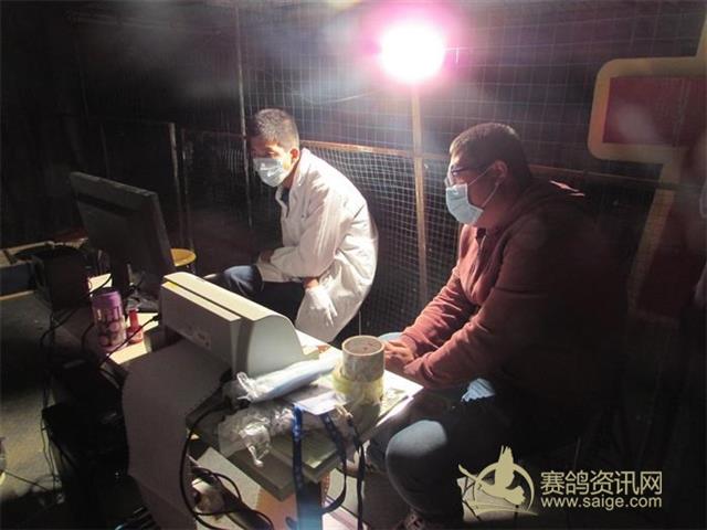 新疆大爱飞天公棚2016年春季200km首关赛集鸽现场,鸽友代表监督计算机