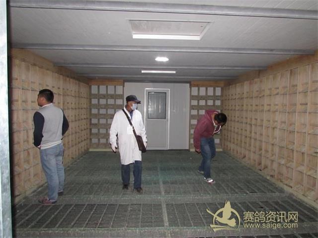 新疆大爱飞天公棚2016年春季200km首关赛集鸽现场,裁判员及鸽友代表查棚