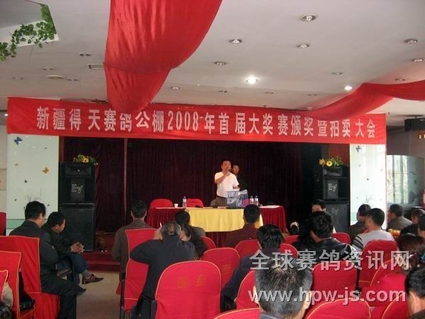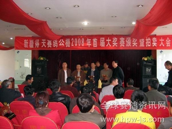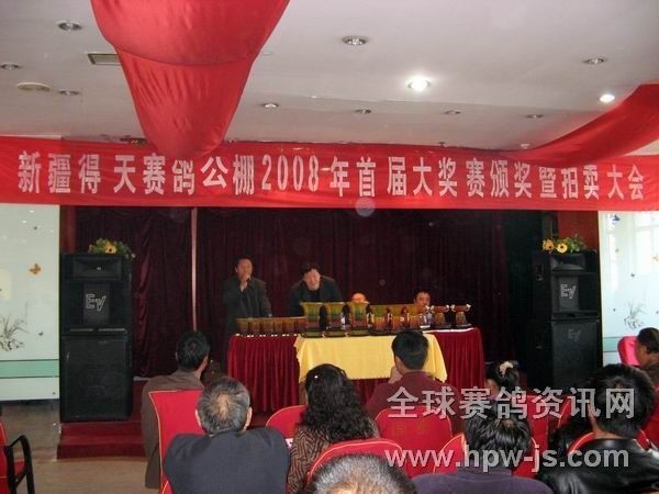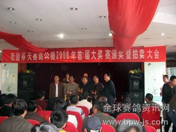 新疆得天赛鸽公棚首届大奖赛拍卖现场 相关连接:1.