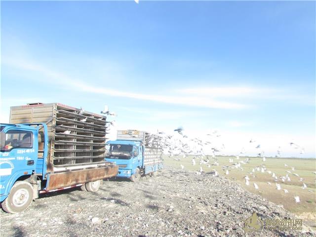 新疆飞天大爱公棚2017年春棚200公里首关赛集鸽和放飞现场