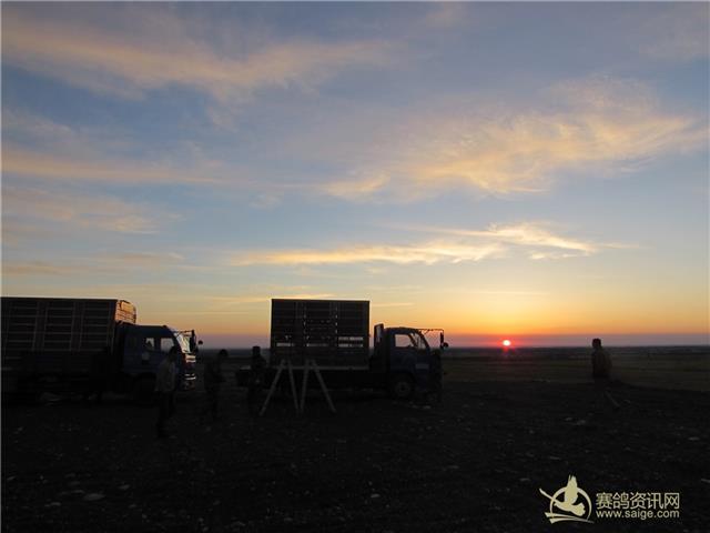 新疆飞天大爱公棚2017年春棚200公里首关赛放飞现场,放飞地的日出