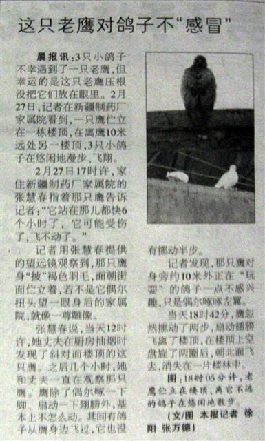 这只老鹰对鸽子不“感冒”