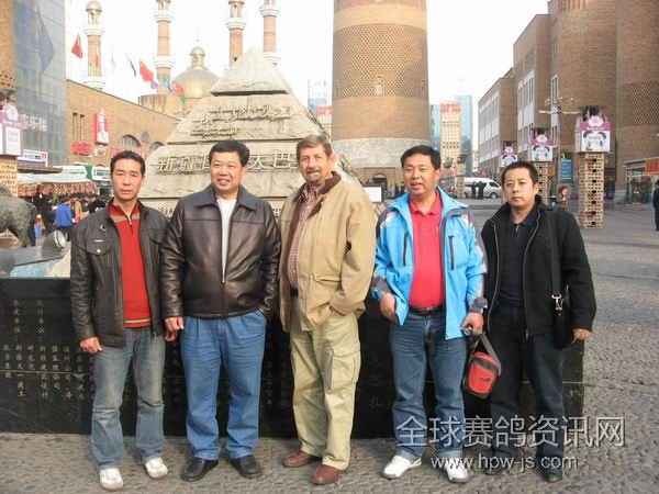 时间:2009年3月24日 地点:新疆天宝国际赛鸽公棚 人物:麦克·史密斯(美国赛鸽名家)、余伯华(美国赛鸽名家)、顾伟德(上海赛鸽名家)、侯玉民(乌鲁木齐市信鸽协会裁判、青年赛鸽家)、孙建设(海霸王驻新疆记者)等