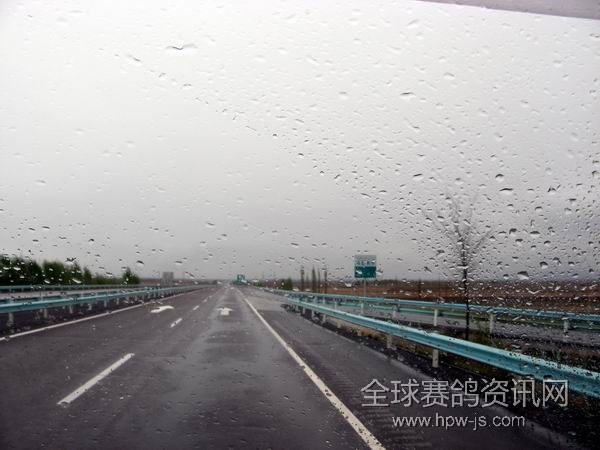 乌鲁木齐市米东区三关赛首关赛 赛鸽车返回的路上,车外还在下着雨,感觉雨越来越大
