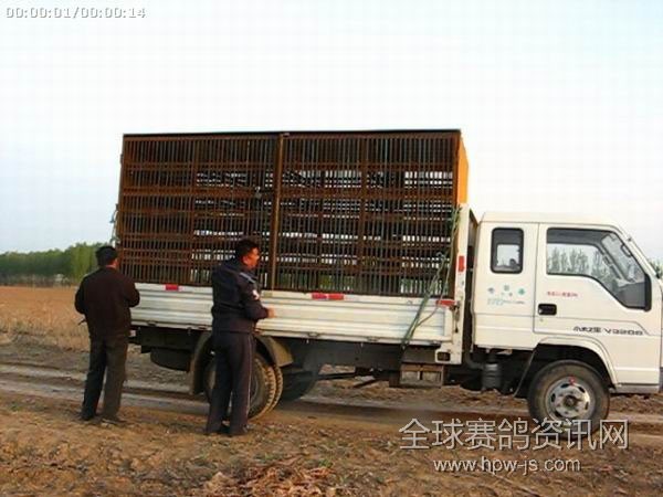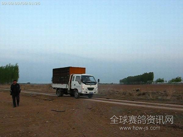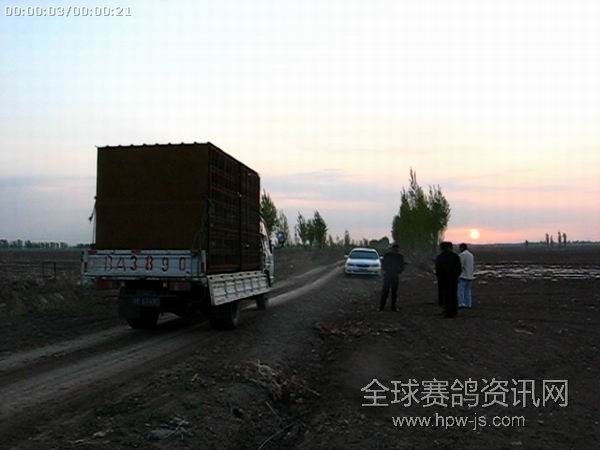 新疆奇台绿州公棚09年春季300km预赛,赛鸽车到达放飞点