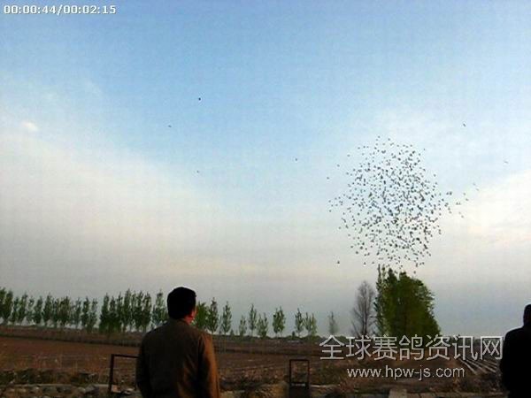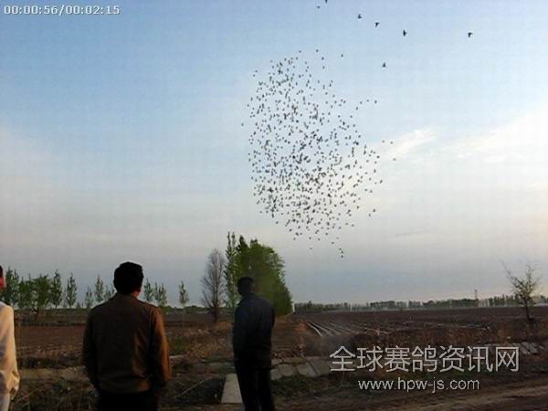 新疆奇台绿州公棚09年春季300km预赛放飞现场,赛鸽们向家的方向飞去