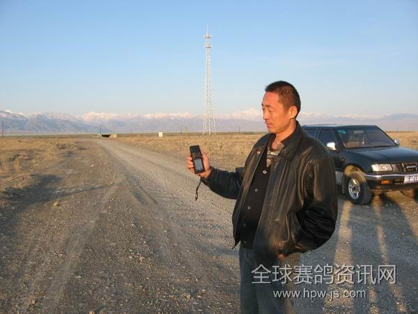 新疆乌市红光山公棚300km预赛放飞现场,裁判用GPS核对司放点经纬度